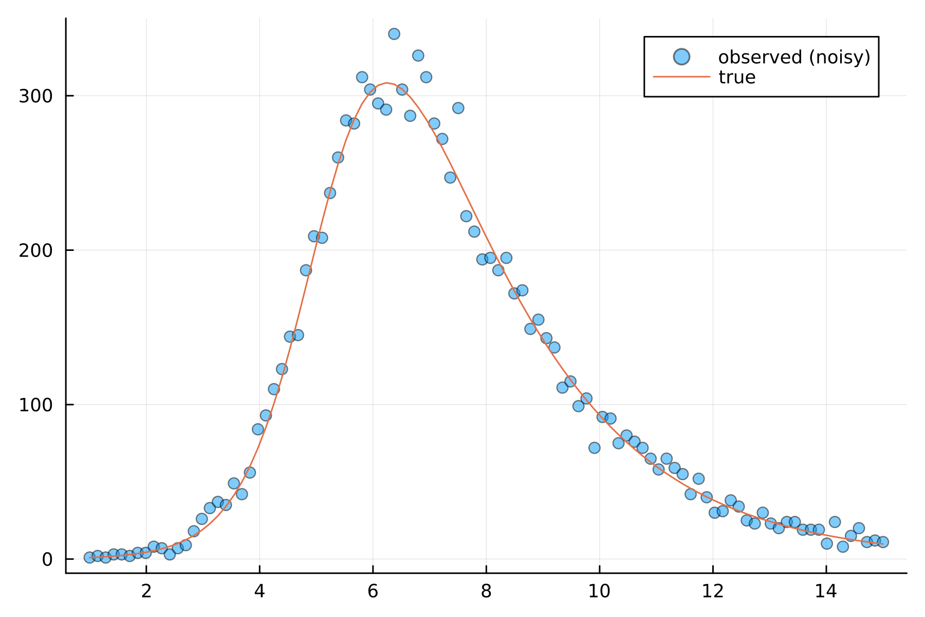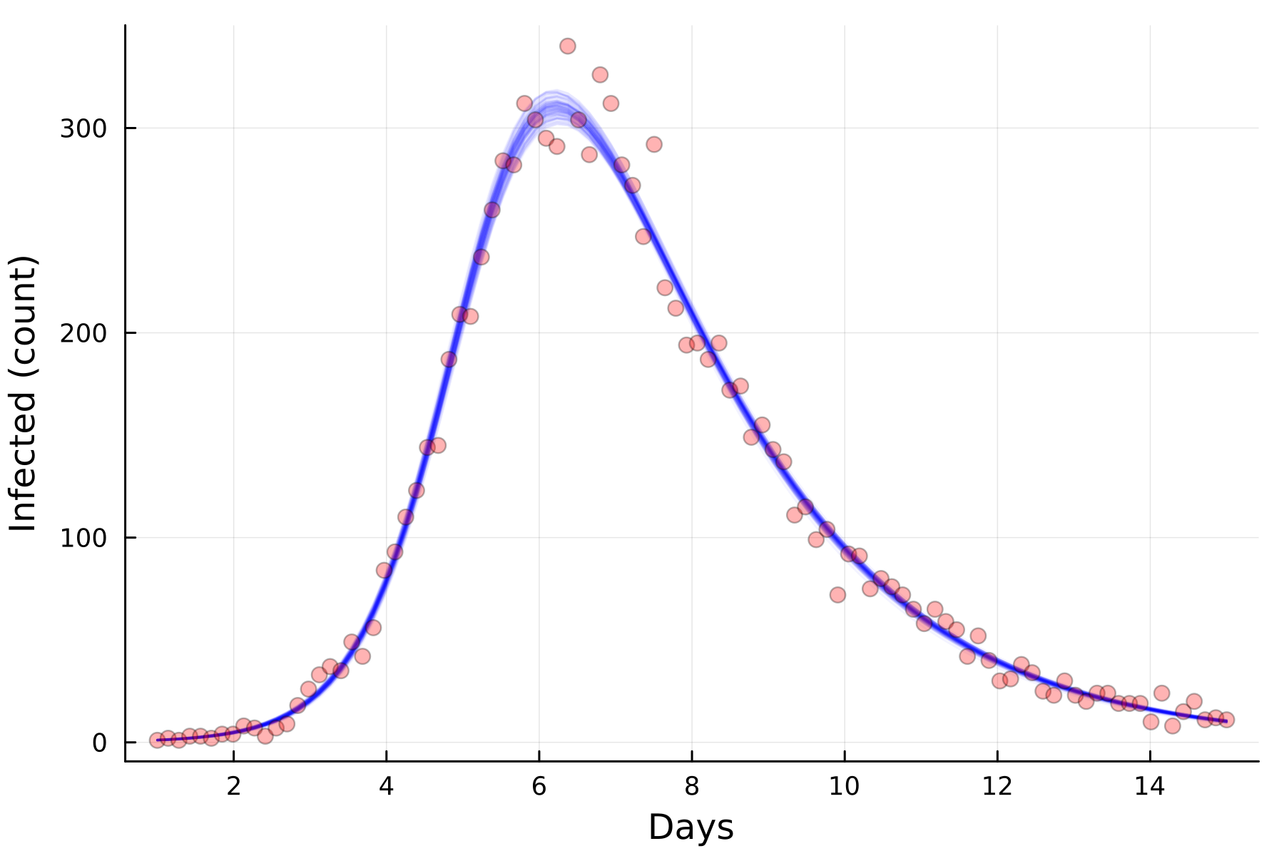 A while ago, I wrote a post about fitting 3-state SIR models in Stan and this is my attempt to port it from R/Stan to Julia/Turing so I can get a feel for the language and to do some basic benchmarks. I am writing this from the perspective of an R programmer who has never used Julia before.